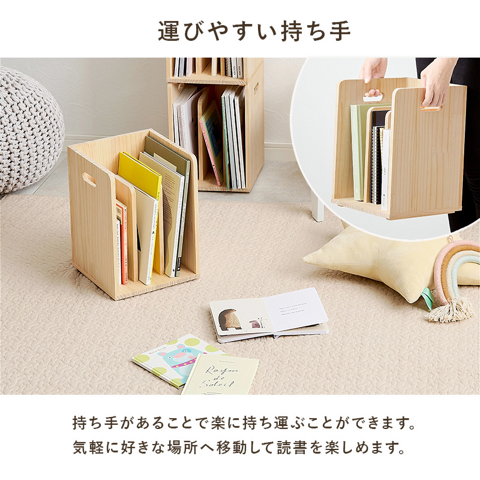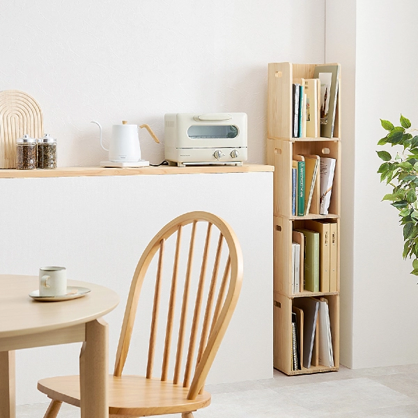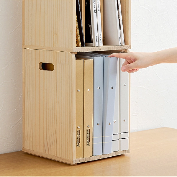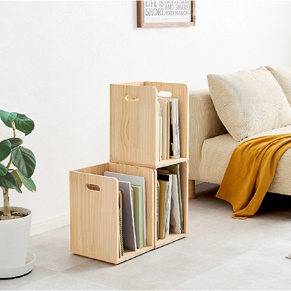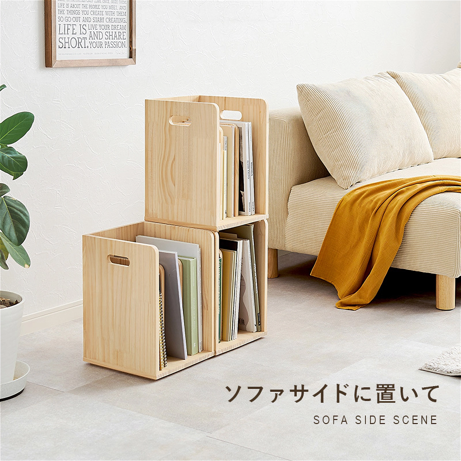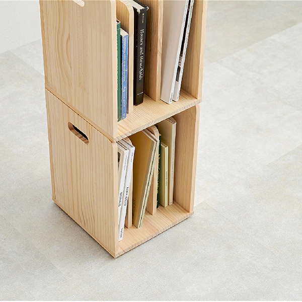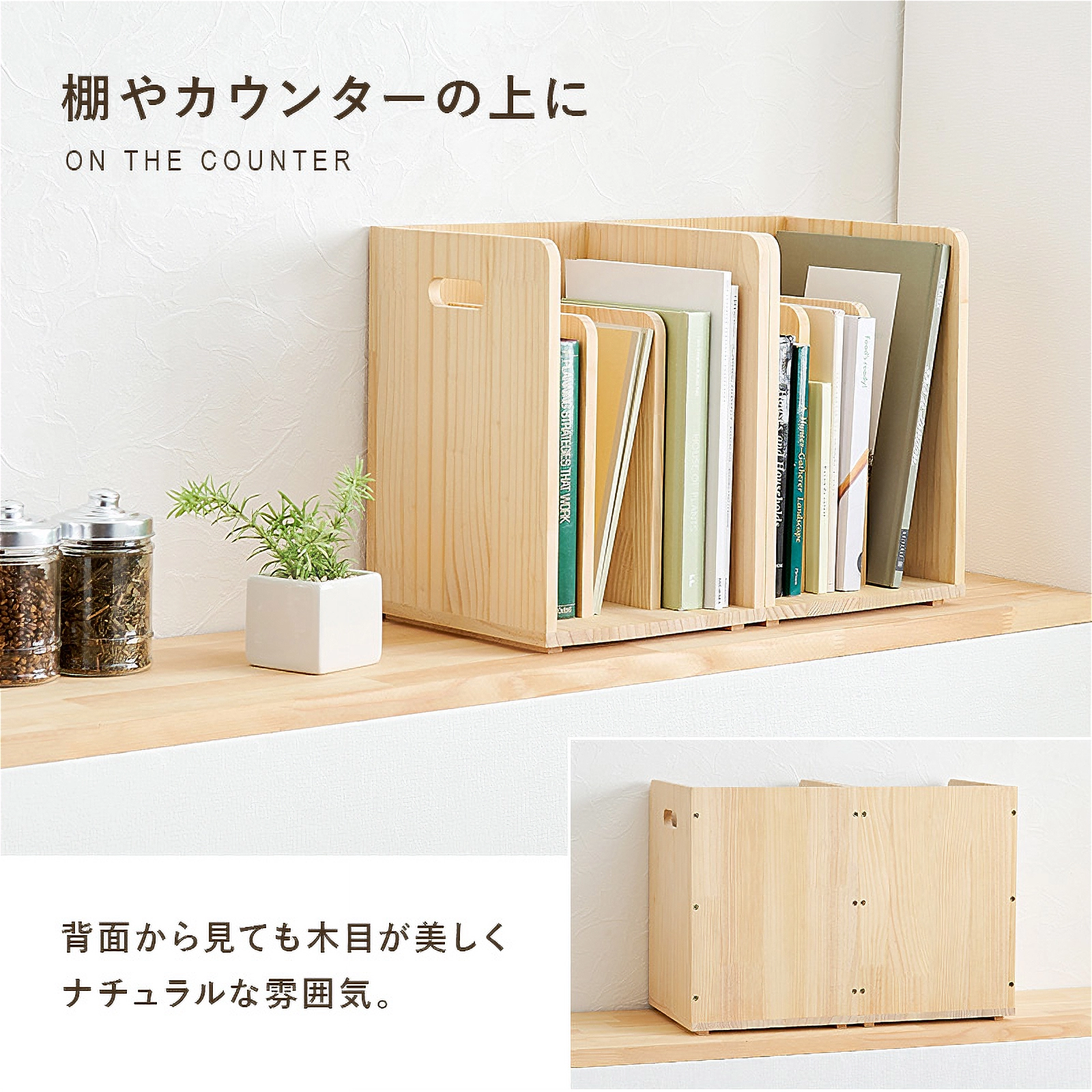 ナチュラルな質感と使いやすさを兼ね備えた、パイン材のブックラック。2個セットで重ねて使えるため、限られたスペースでも収納力をしっかり確保できます。