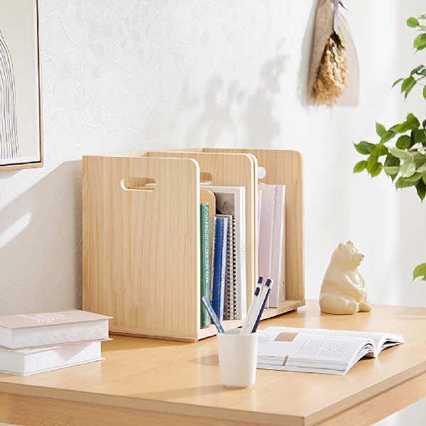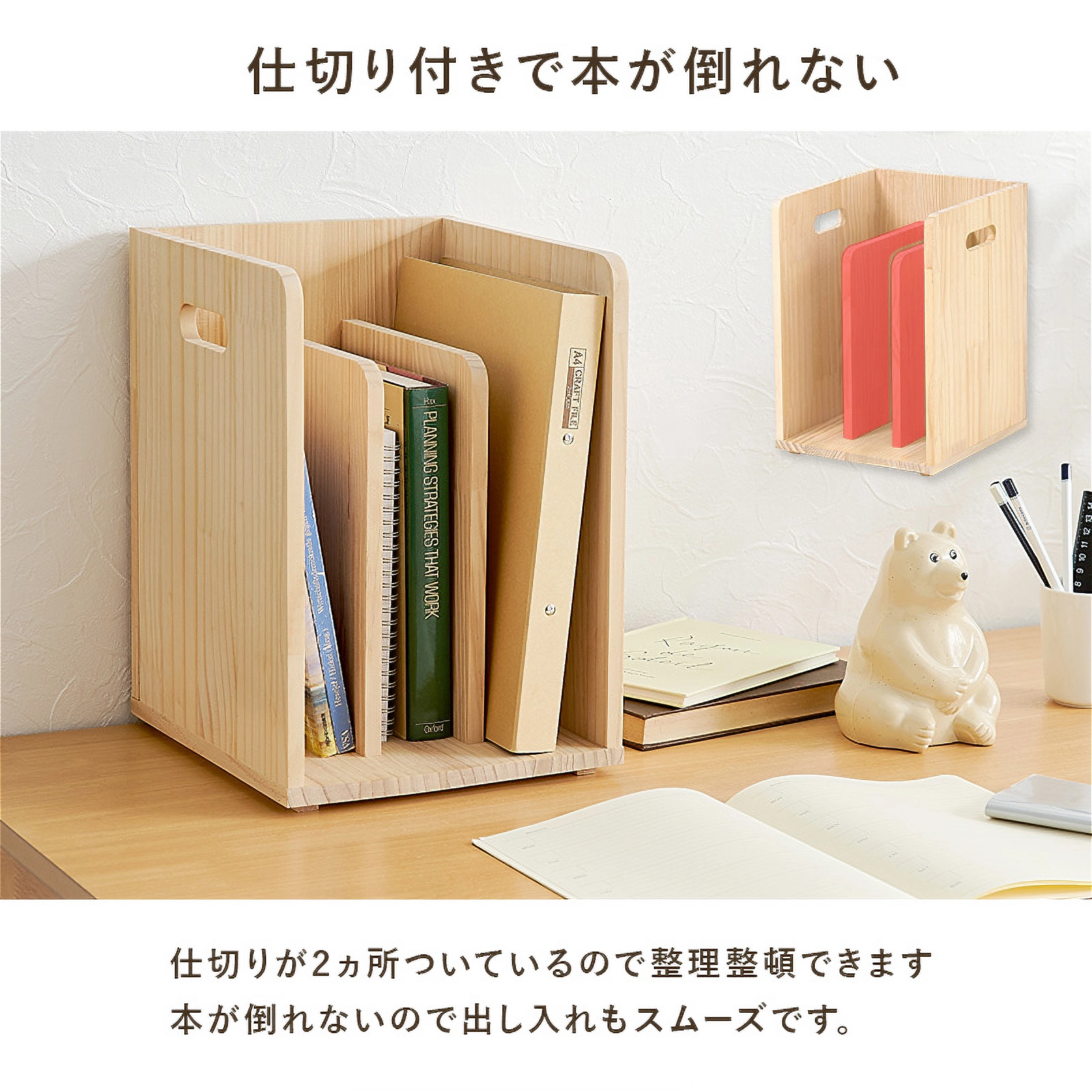 仕切りがついているので、本や雑誌、ノートなどをしっかり分類して立てられます。省スペースながら、デスク周りの整理整頓に効果的。横幅24.5cmのコンパクト設計なので、ちょっとしたすき間にも収まります。