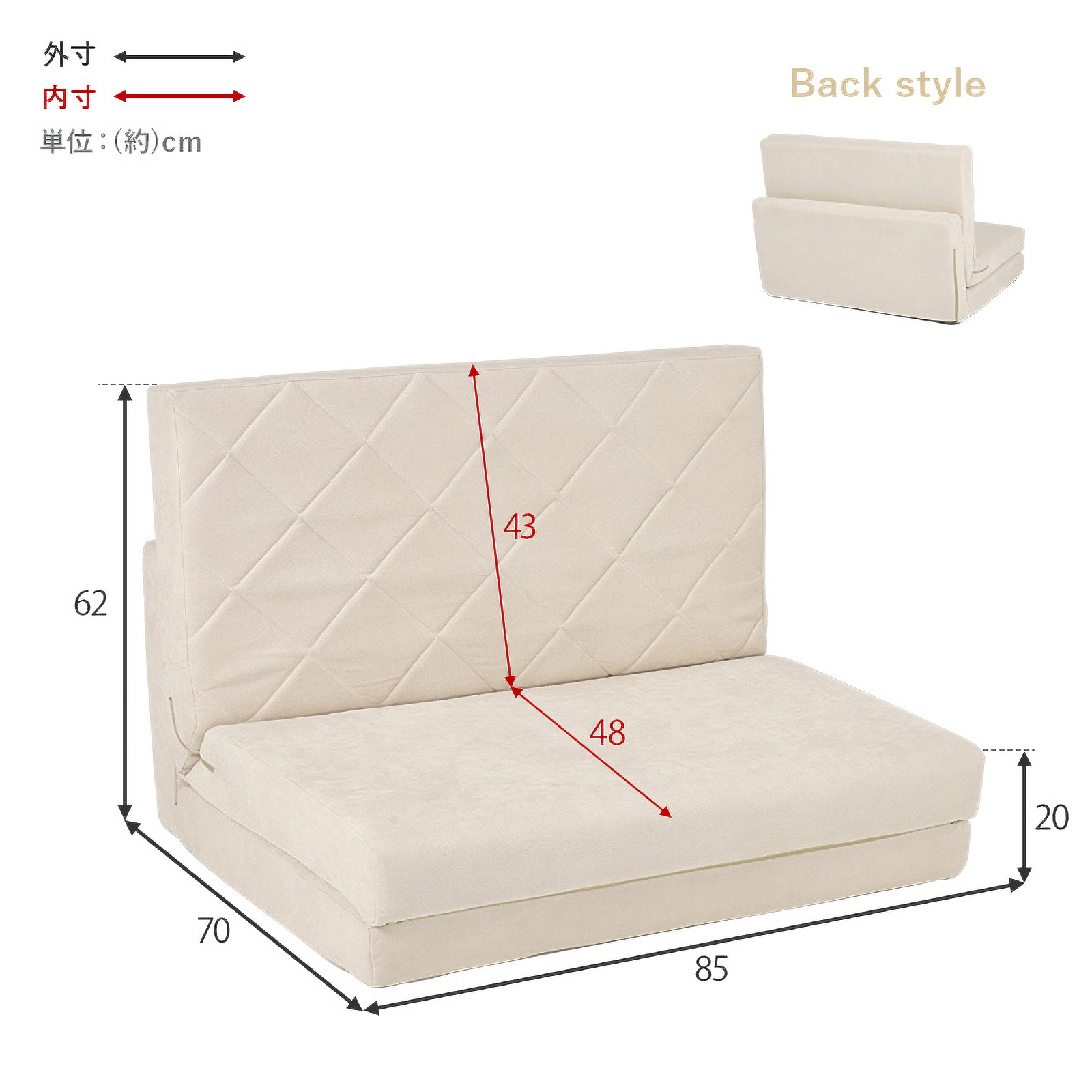 | サイズ | (約)幅85×奥行70/173×高さ62/40×座面高20/10cm |