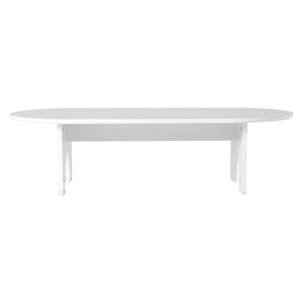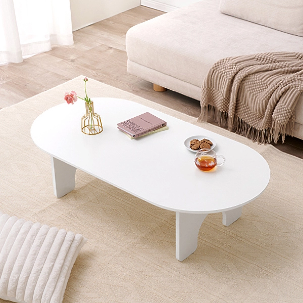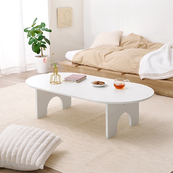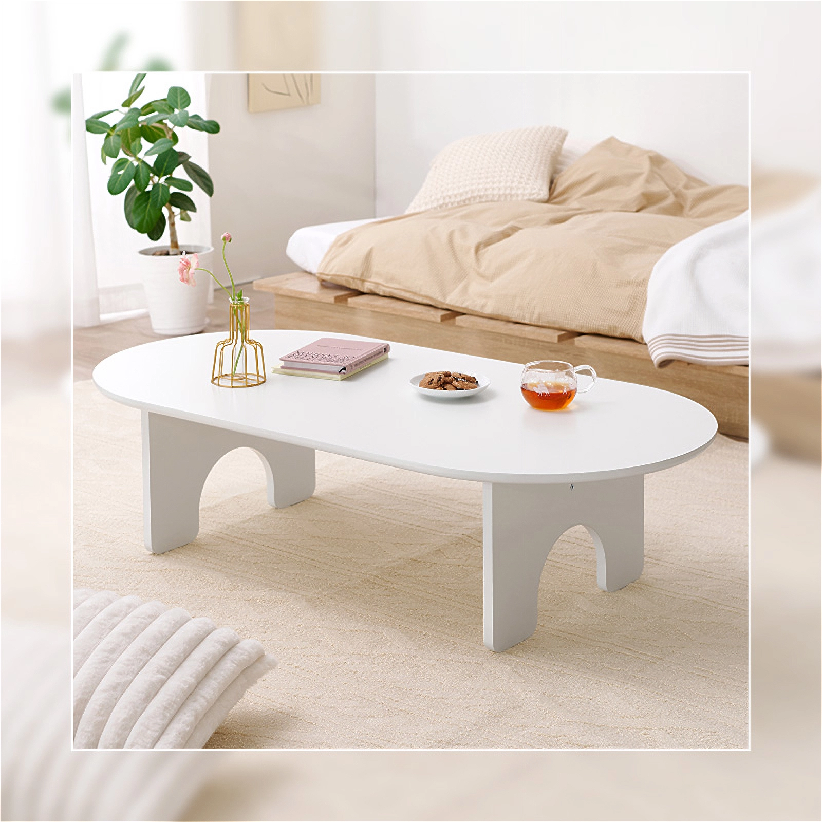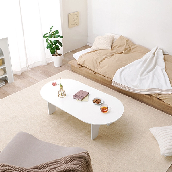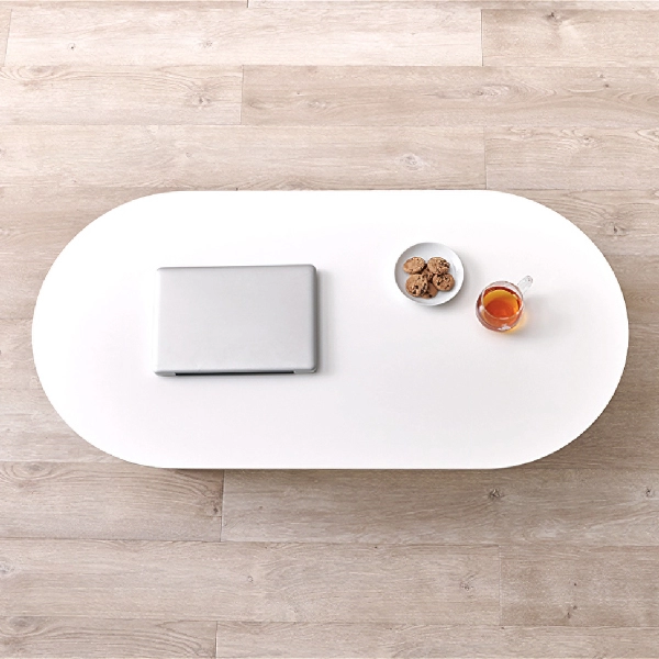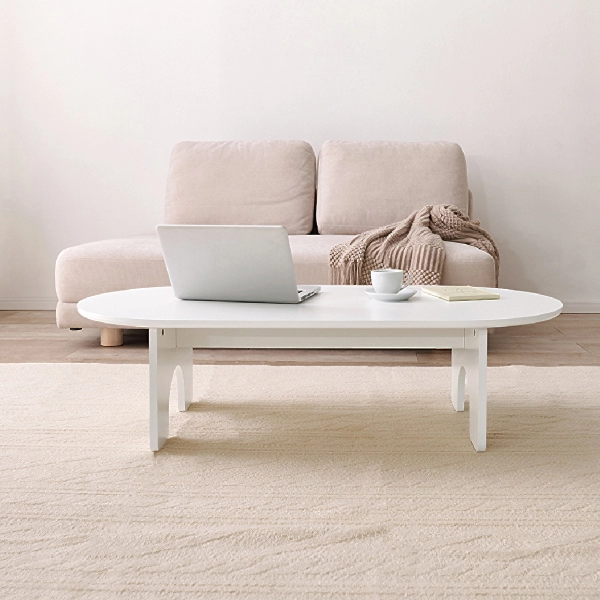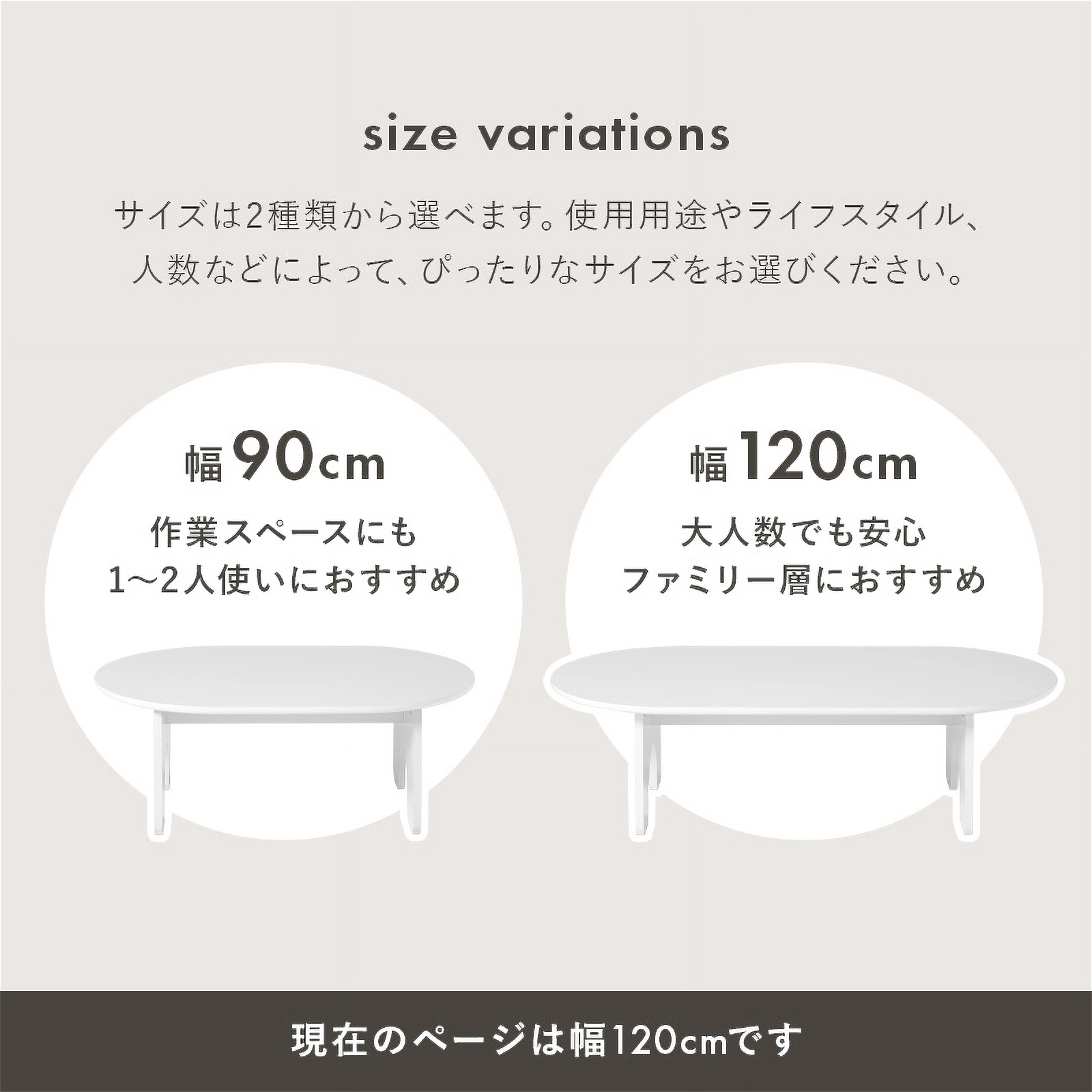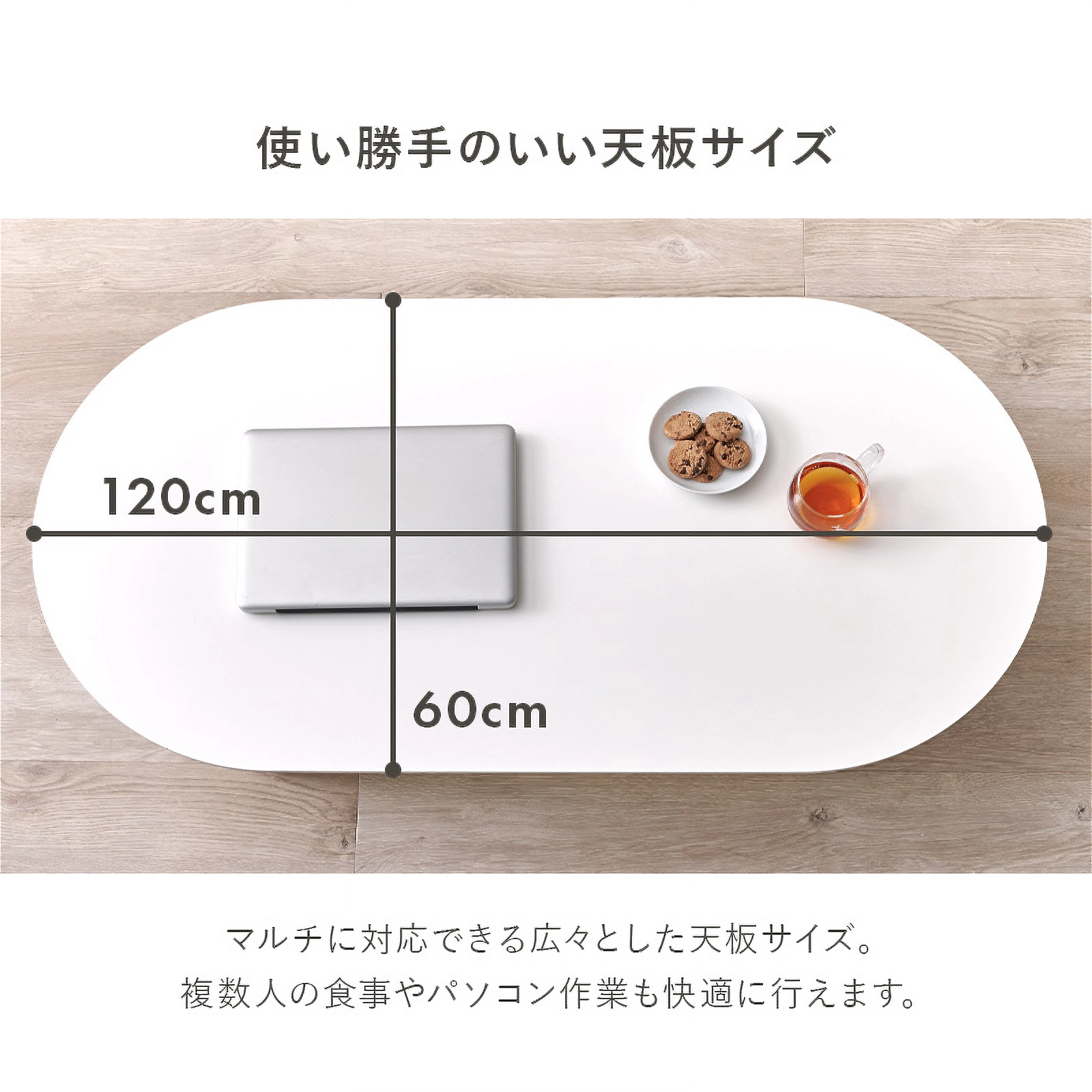 幅120cmの広々とした天板は、ティータイムや読書、ちょっとした作業スペースにもぴったり。丸みのあるオーバル型は圧迫感を感じさせず、やさしい印象を空間に与えます。