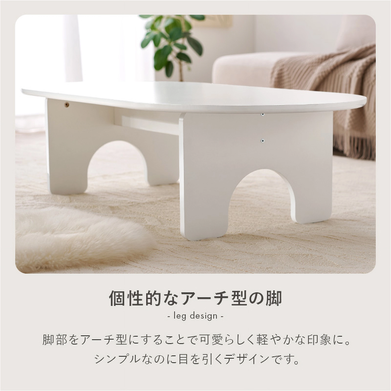 脚部には柔らかなアーチデザインを採用。全体のバランスを整えながら、さりげないデザイン性をプラスしています。北欧風や韓国インテリアとの相性も抜群です。
