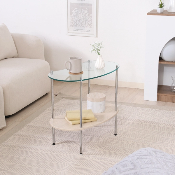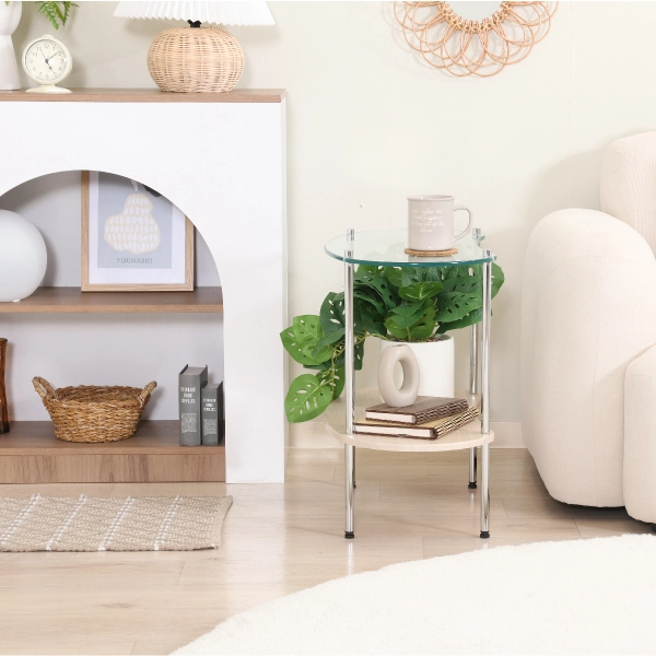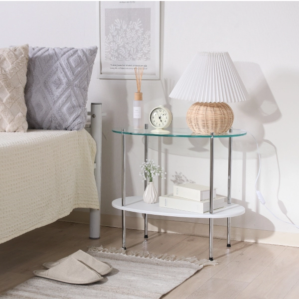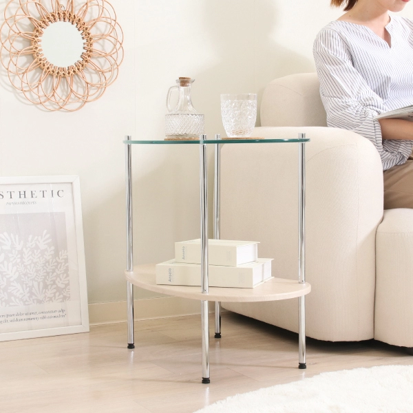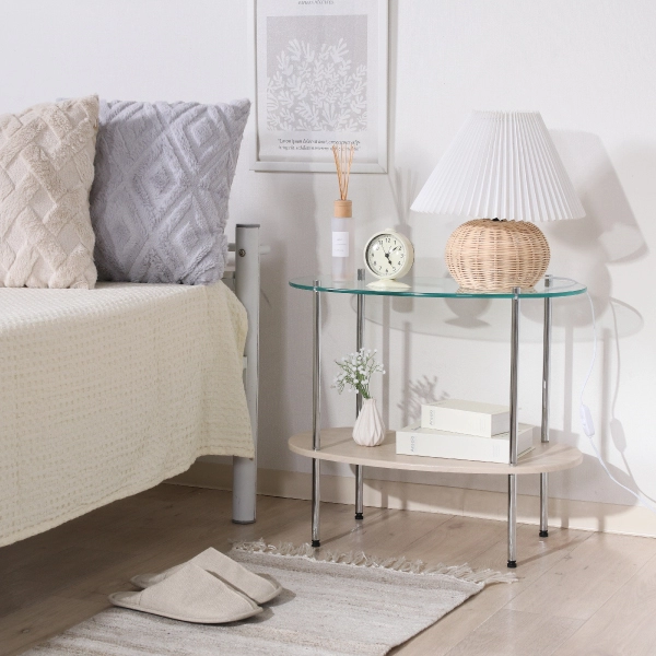 シンプルでありながら“韓国っぽ”な抜け感を演出できる、ガラスサイドテーブル。透明感のあるガラストップと丸みのあるシルエットが、やわらかく洗練された印象を与えます。