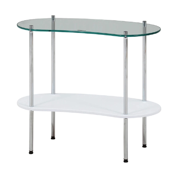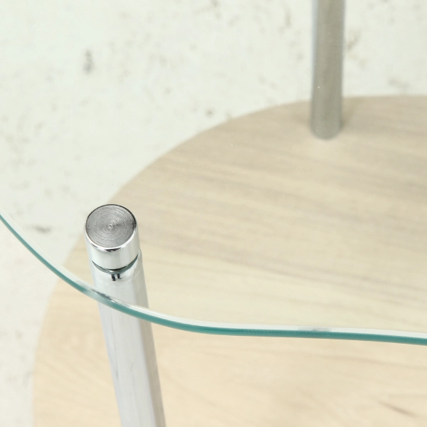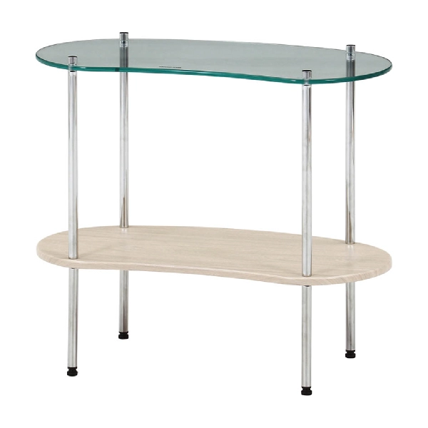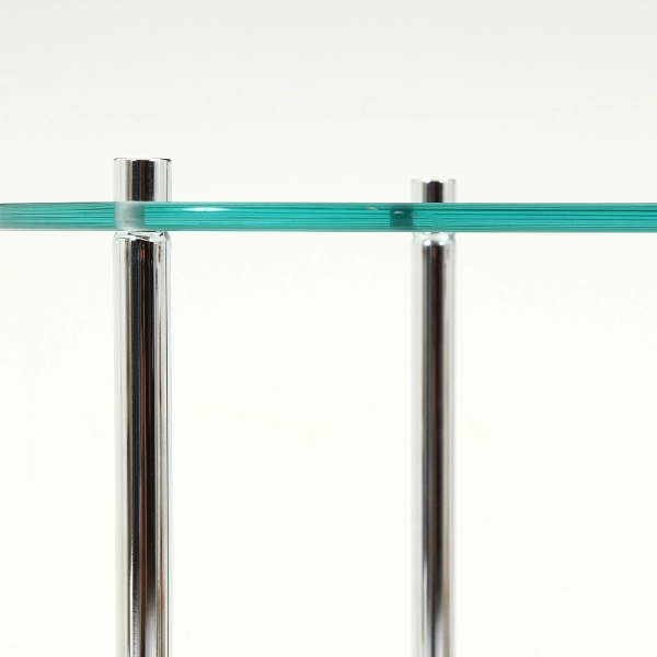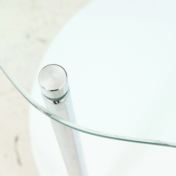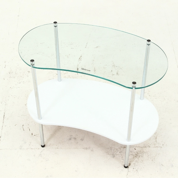 | 素材 | 構造部材(天板):強化ガラス 構造部材(棚板):合成樹脂化粧繊維板(PVC) 構造部材(脚部):金属(鋼) 表面加工(脚部):めっき(クロム) |