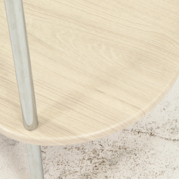 天板は丸みを帯びたやさしいフォルム。高さ約53cmで、ソファ横やベッドサイドにもぴったり。シンプルながらも空間のアクセントになる、さりげない存在感が魅力です。