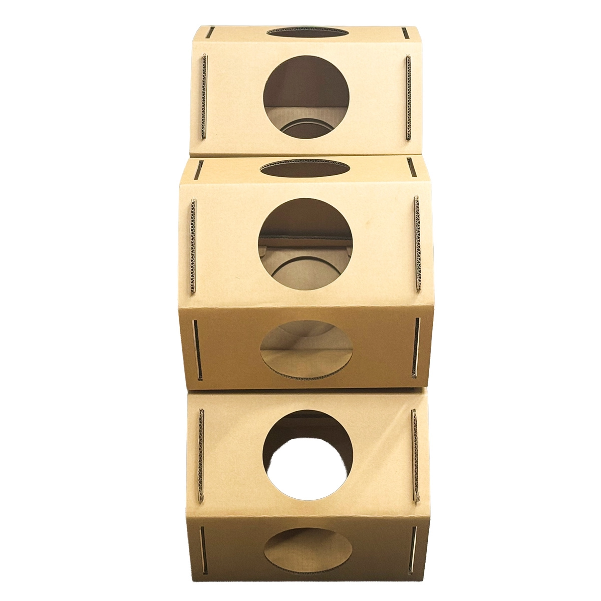 横にも縦にも連結できるから、レイアウトはあなた次第。三角の空間を組み合わせて、キャットタワーのように立体的にしたり、トンネルのように横に並べたり…猫の好奇心をくすぐる工夫が自由に楽しめます。