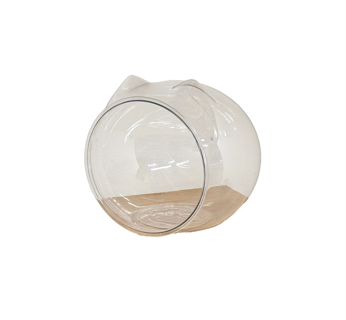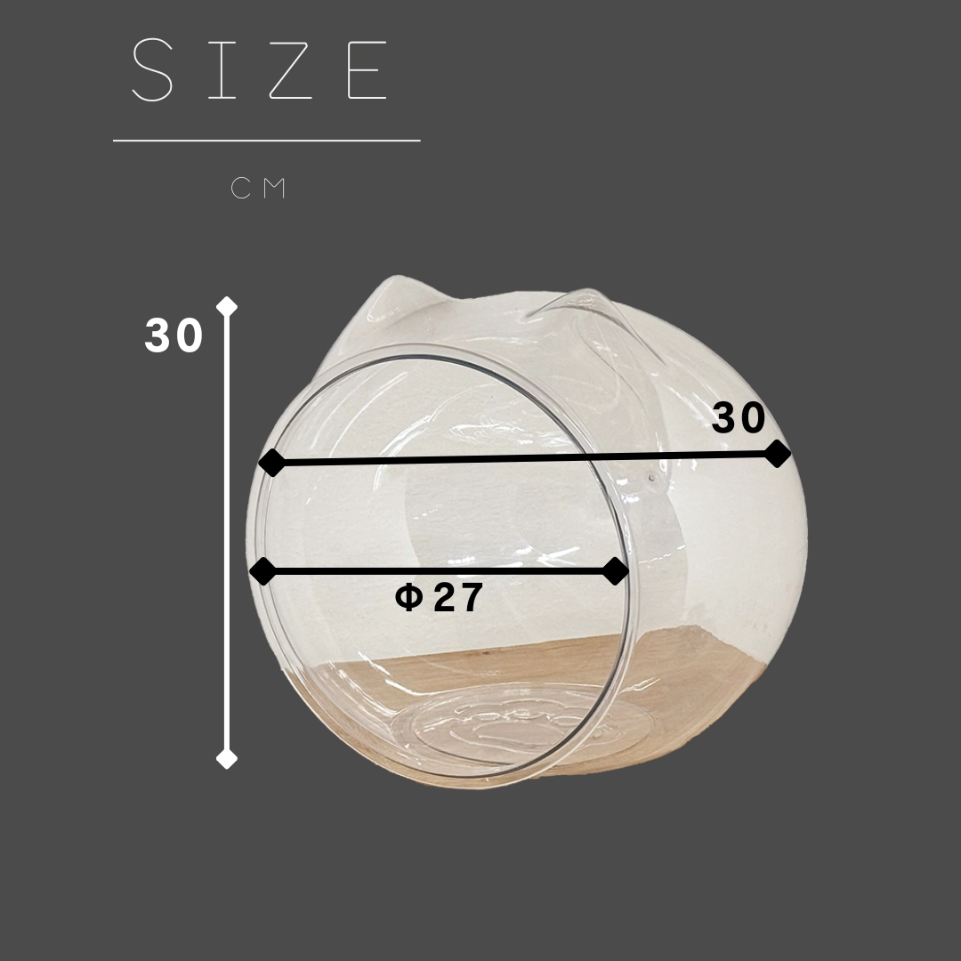 PET素材を使用したスケルトン構造で、愛猫の姿がどの角度からでも見えるデザイン。猫耳型のフォルムがアクセントになり、インテリアとしても映える可愛さです。