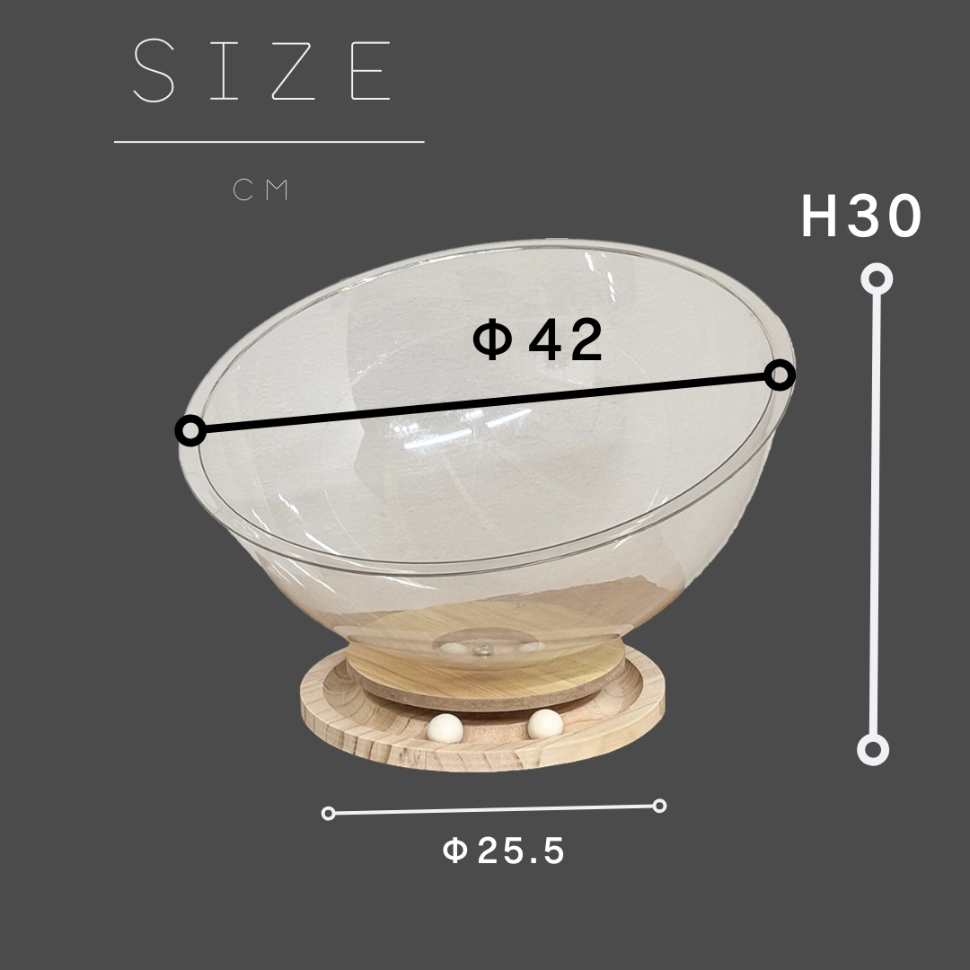 透明な半球型が生み出す開放感と、猫にぴったりの包まれ感。