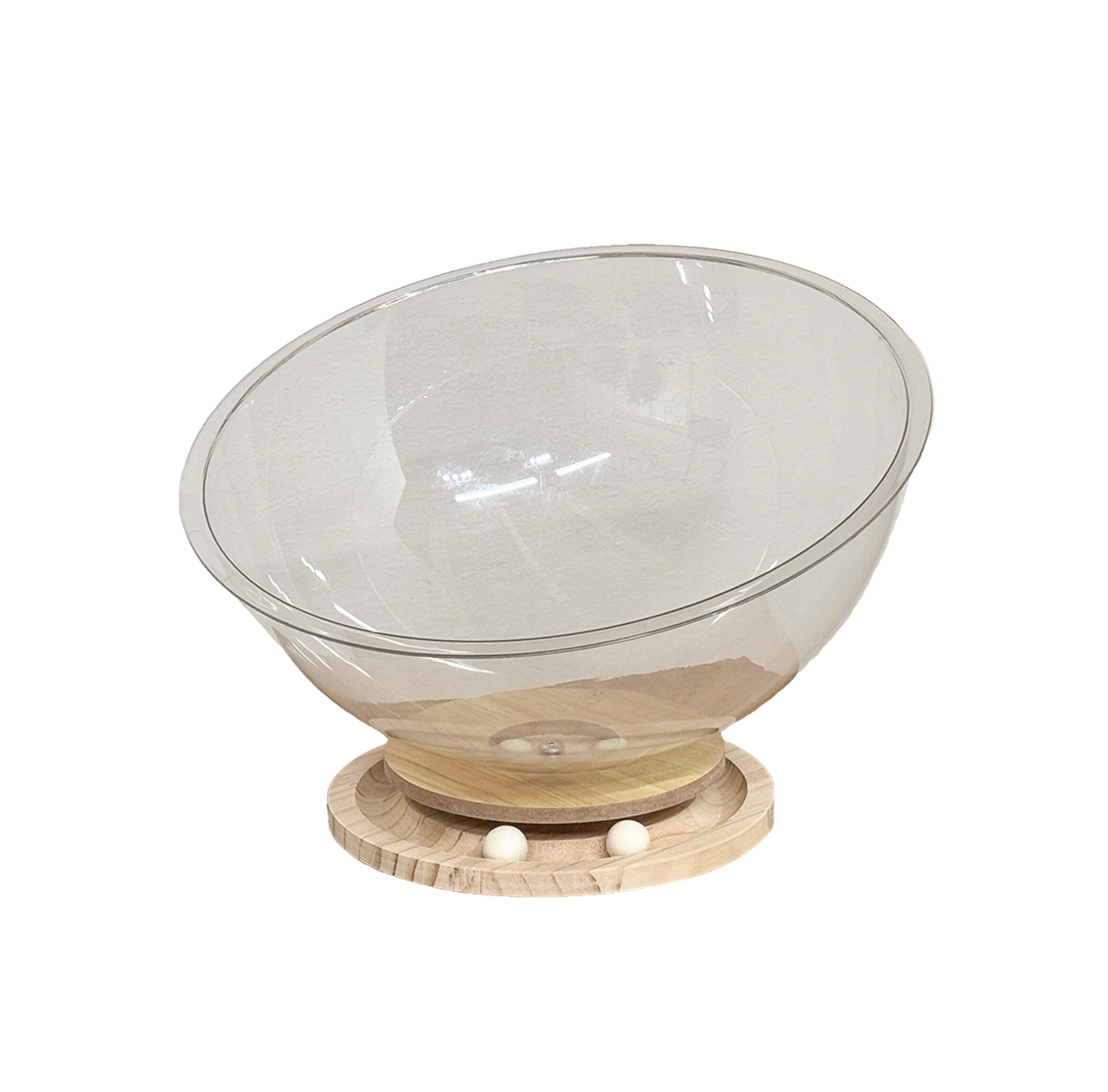 まるで宇宙船のような、斜めに傾いた半球型デザイン。「クリア素材のねこボウル」は、猫の“入りたい”気持ちをくすぐる秘密基地のような隠れ家です。