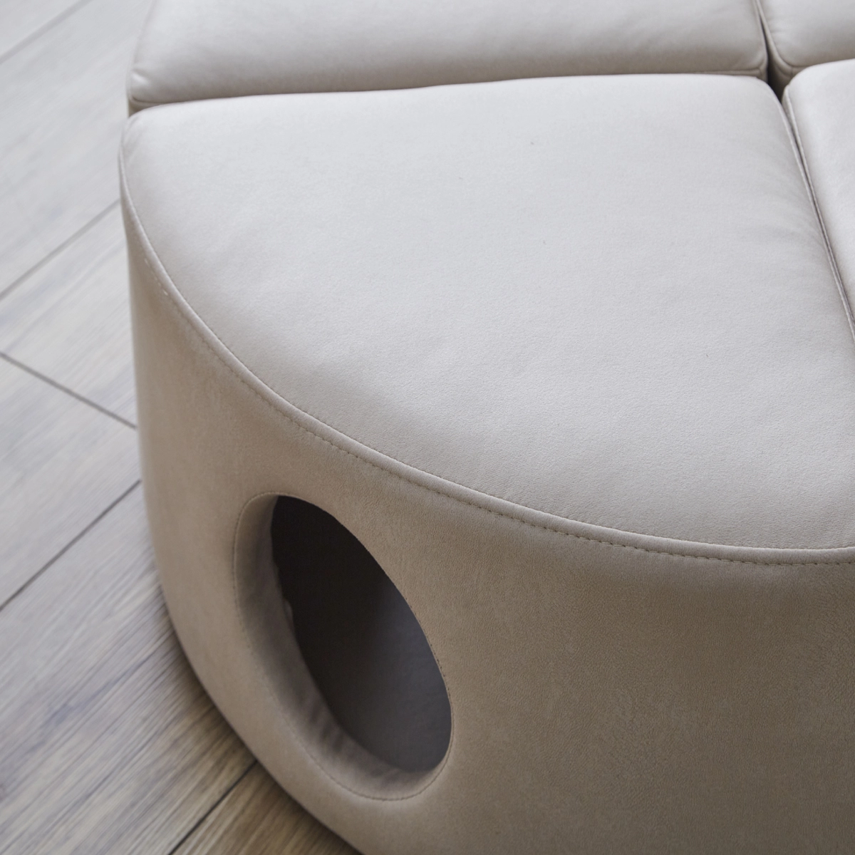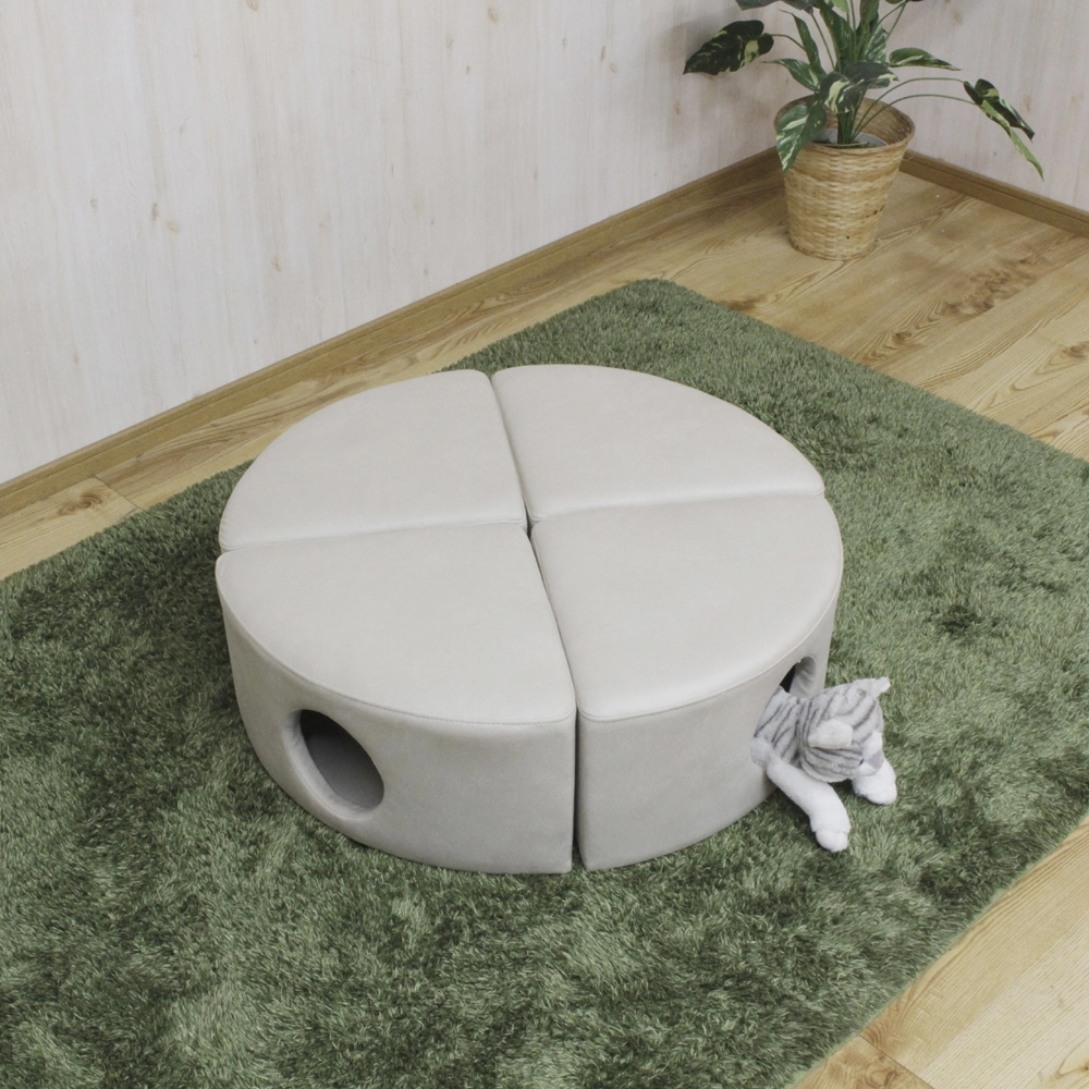 ネコちゃんが思いっきり遊んでも安心の、引っかきキズに強い特殊生地を採用。耐久性が高く、長く使えるのが嬉しいポイントです。さらに、大人が座ってもつぶれないしっかり構造で安心。