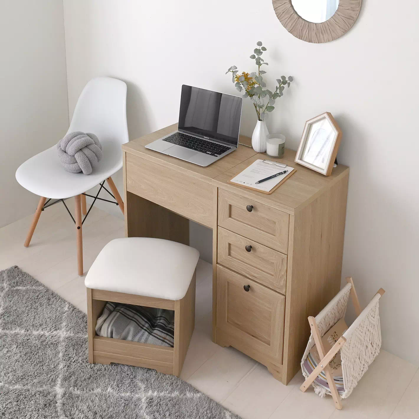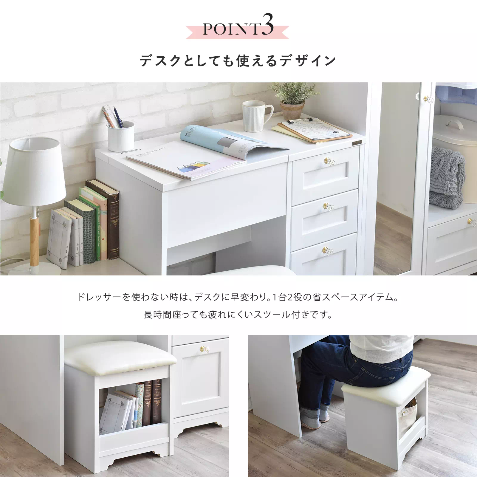 女性の「欲しい」をぎゅっと詰め込んだ、1台2役のデスクドレッサー。