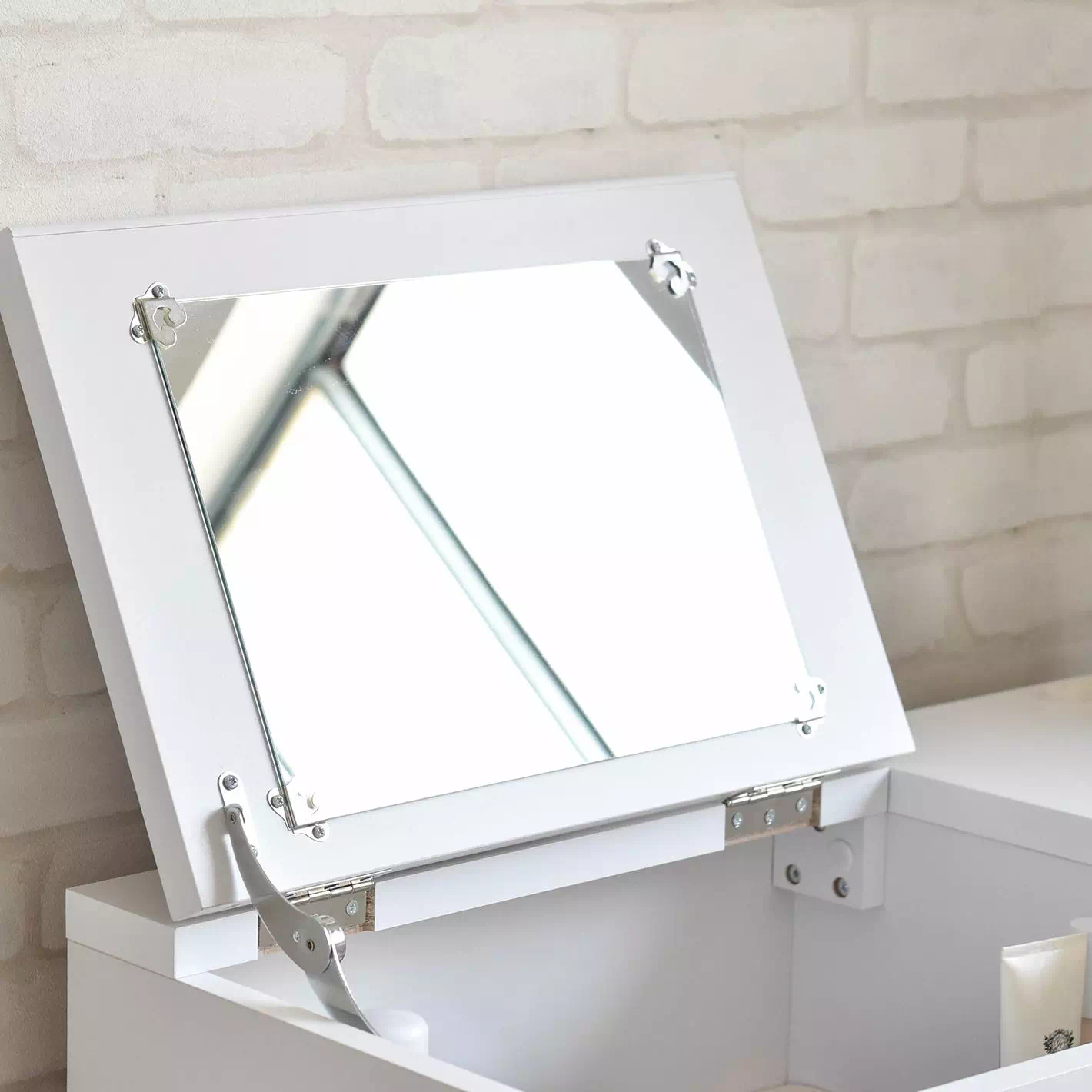 顔周りがしっかり映る大きめミラー付きで、毎日のメイクもスムーズに。