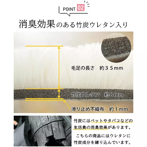 | 素材 | 表地:ポリエステル100% 中材:竹炭ウレタン8mm 裏面:不織布、すべり止め付き |