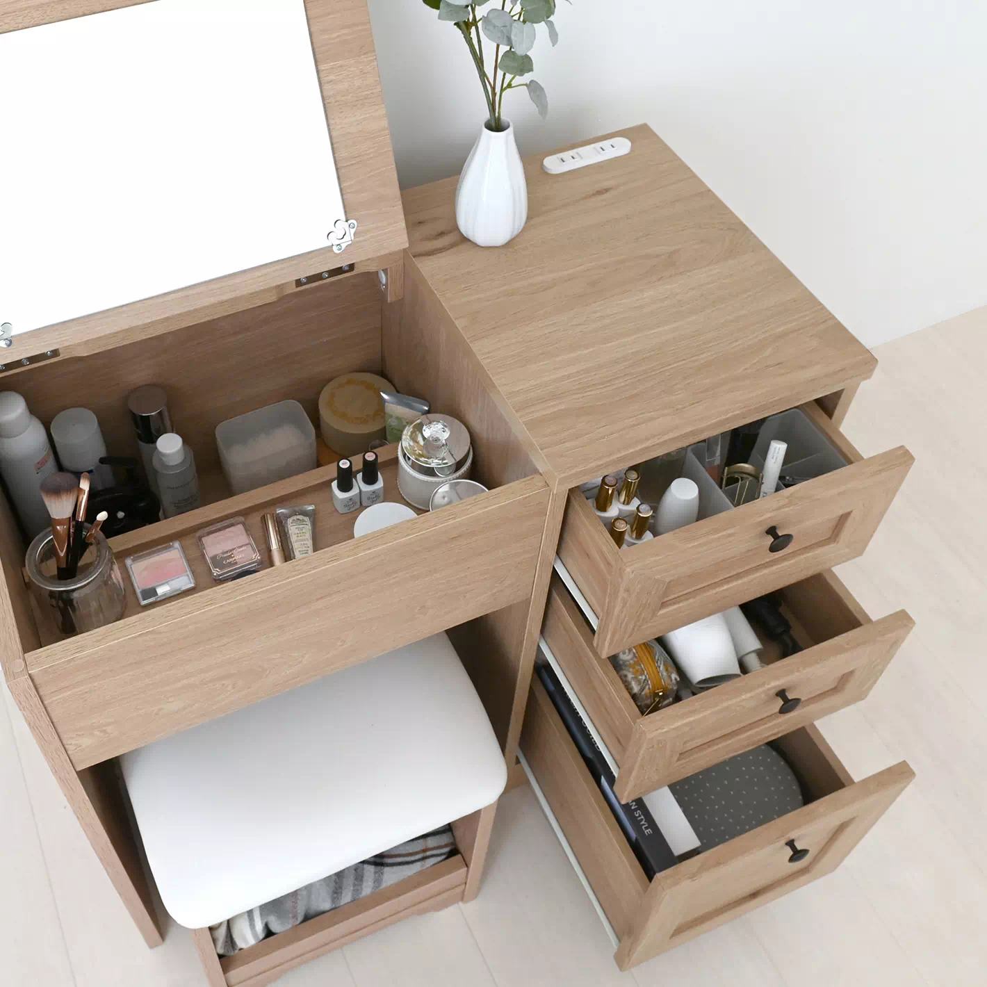 女性の「欲しい」をぎゅっと詰め込んだ、1台2役のデスクドレッサー。