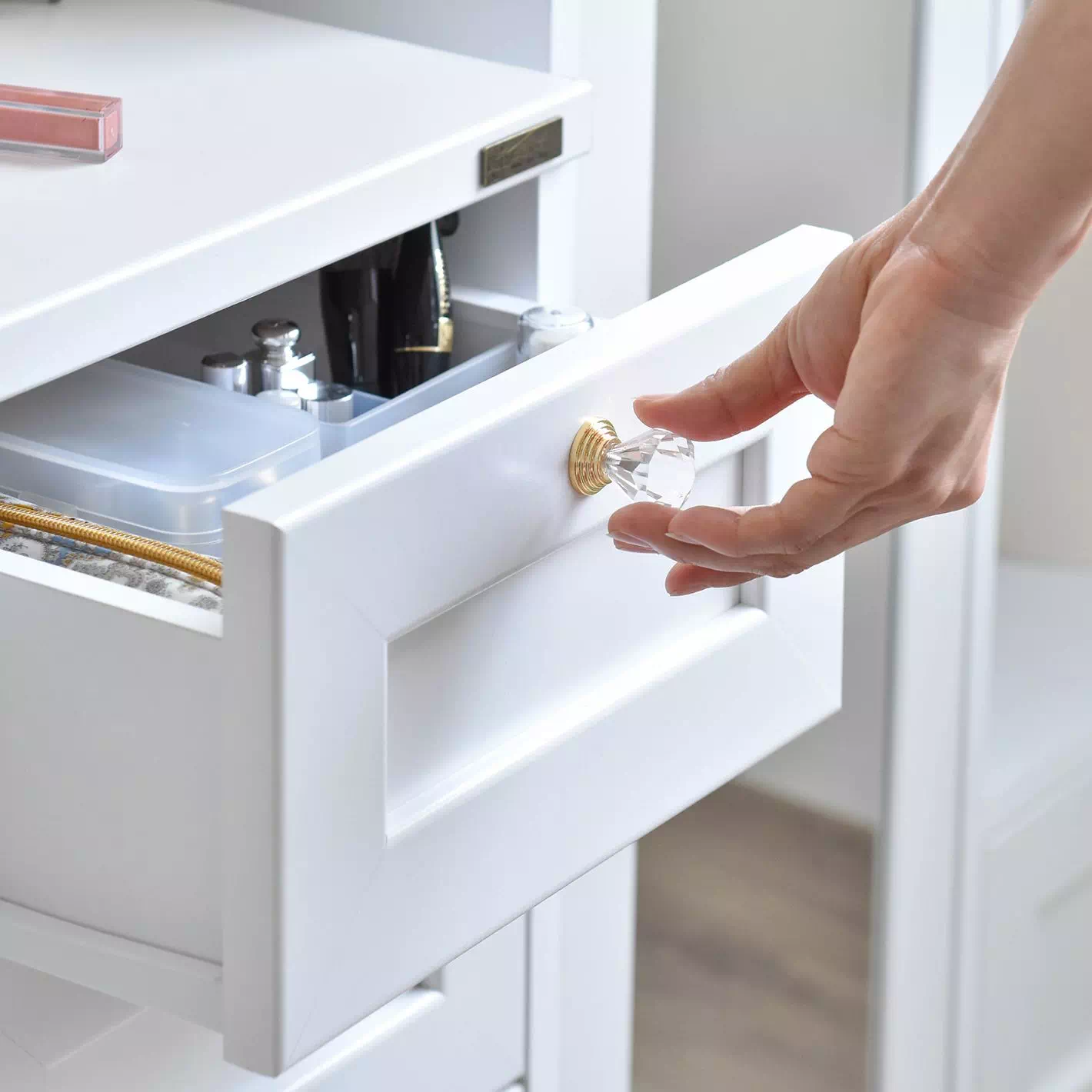 さらにサイズ違いの引き出し3杯付きで、アイテムごとに整理しやすく、生活感のあるものもすっきり隠せます。