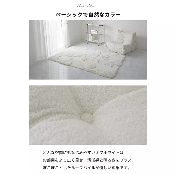 オフホワイトのやさしいカラーと、ぽこぽことしたループパイル生地が空間に柔らかさをプラスします。