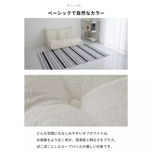 オフホワイトのやさしいカラーと、ぽこぽことしたループパイル生地が空間に柔らかさをプラスします。