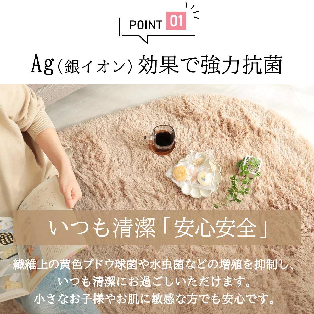 ふわっと贅沢なボリューム感で、くつろぎを格上げするラグ「シフォン」