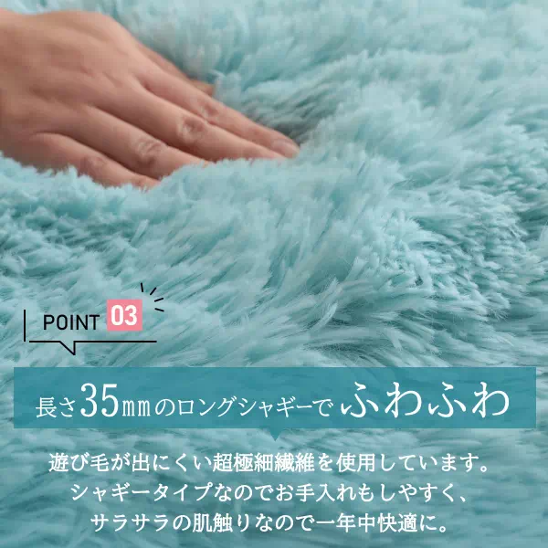 毛足35mmのボリュームたっぷりなシャギーが、足元をやさしく包み込みます。
