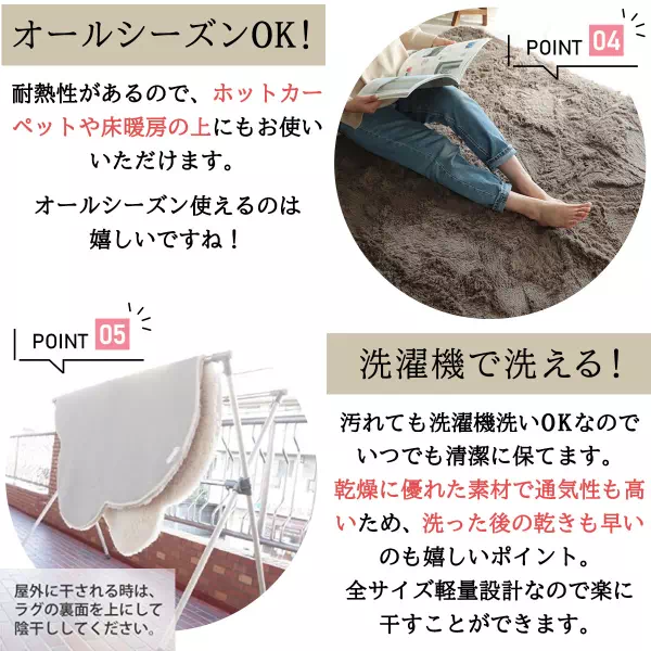 すべり止め付きで安心して使え、ホットカーペットや床暖房にも対応しています。